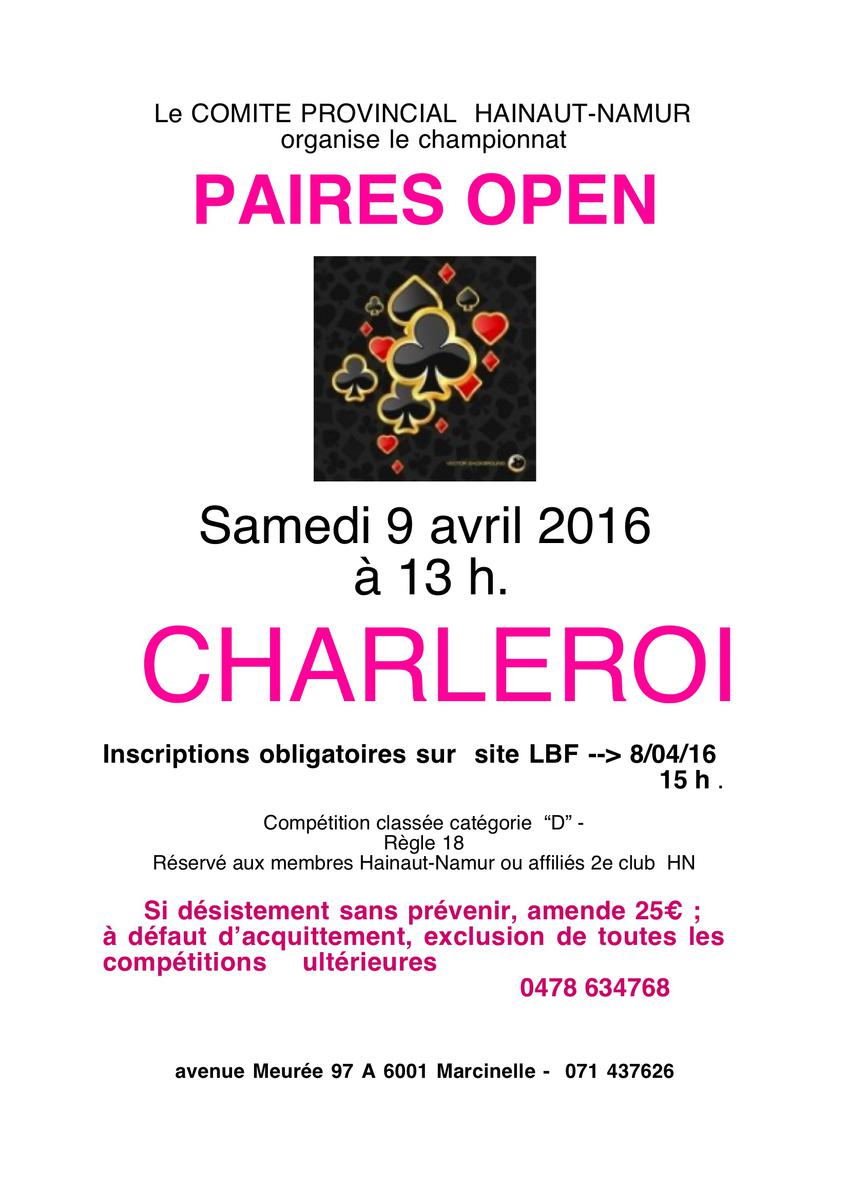 Paires Open - Hainaut-Namur - 9/4/2016